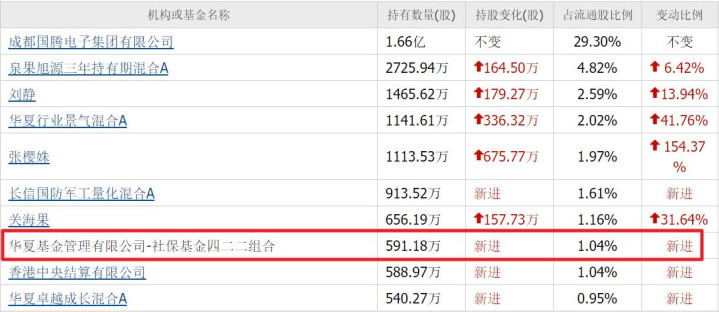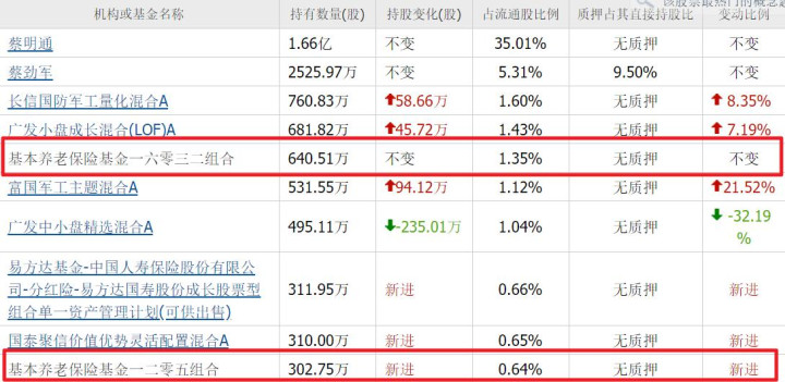 前十大流通股东中有两大养老保险基金,养老保险一六零三二组合重仓640万股;养老保险基金一二零五组合新进302万股。
